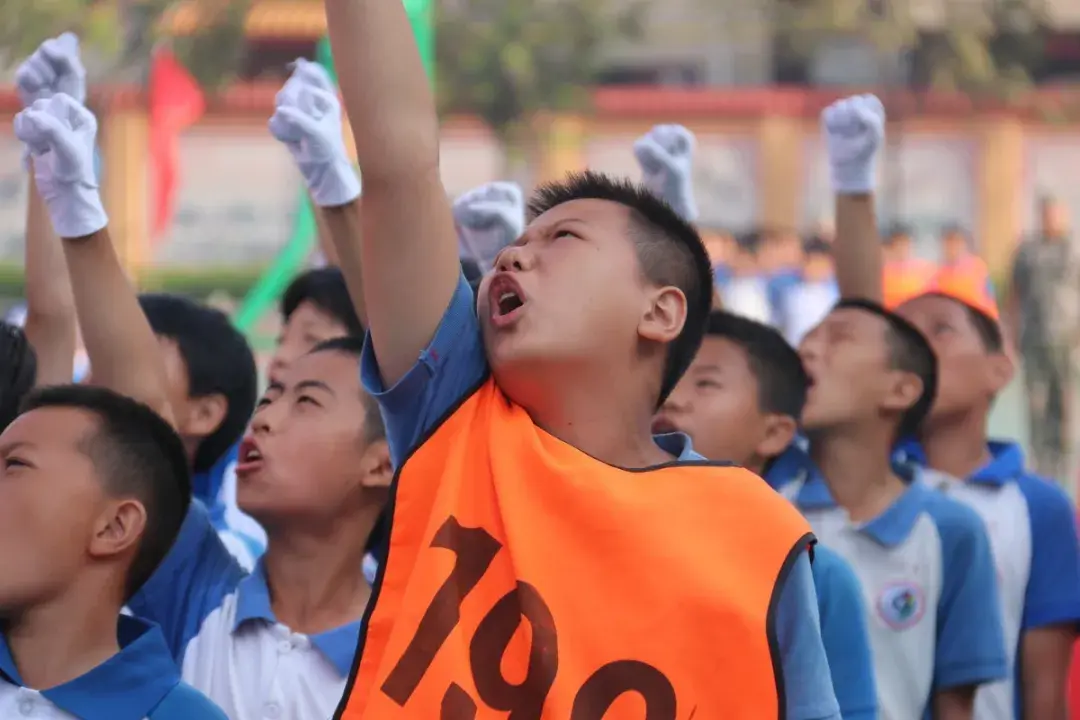 国旗飘飘,铸钢铁意志,伴随着雄壮的《义勇军进行曲》,鲜艳的五星红旗冉冉升起,全体师生面向国旗行注目礼。在庄严肃穆的升旗仪式后,汇报表演正式开始。