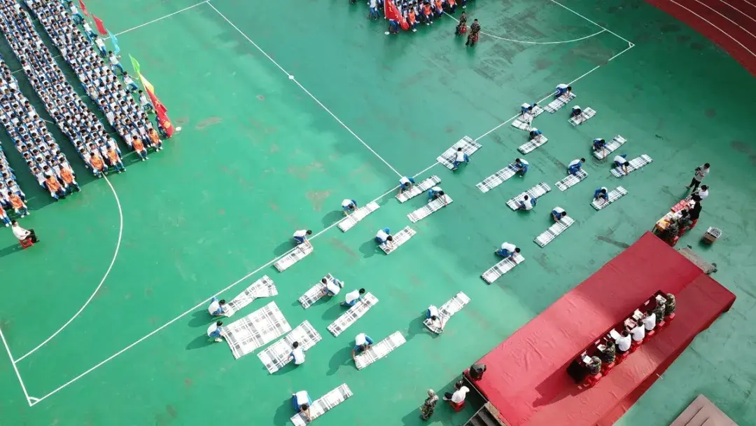 他们挺直的身板,整齐的动作,嘹亮的口号,充分彰显了朝阳学子不怕吃苦、积极进取的优良品质。十天的训练,他们用行动诠释了坚强,用信念练就了团结,用坚持磨砺了意志。