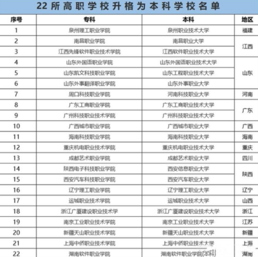 版权声明:我们致力于保护作者版权,注重分享,被刊用文章【可专升本的学校有哪些(22所高职院校晋升为本科)】因无法核实真实出处,未能及时与作者取得联系,或有版权异议的,请联系管理员,我们会立即处理! 部分文章是来自自研大数据AI进行生成,内容摘自(百度百科,百度知道,头条百科,中国民法典,刑法,牛津词典,新华词典,汉语词典,国家院校,科普平台)等数据,内容仅供学习参考,不准确地方联系删除处理!;