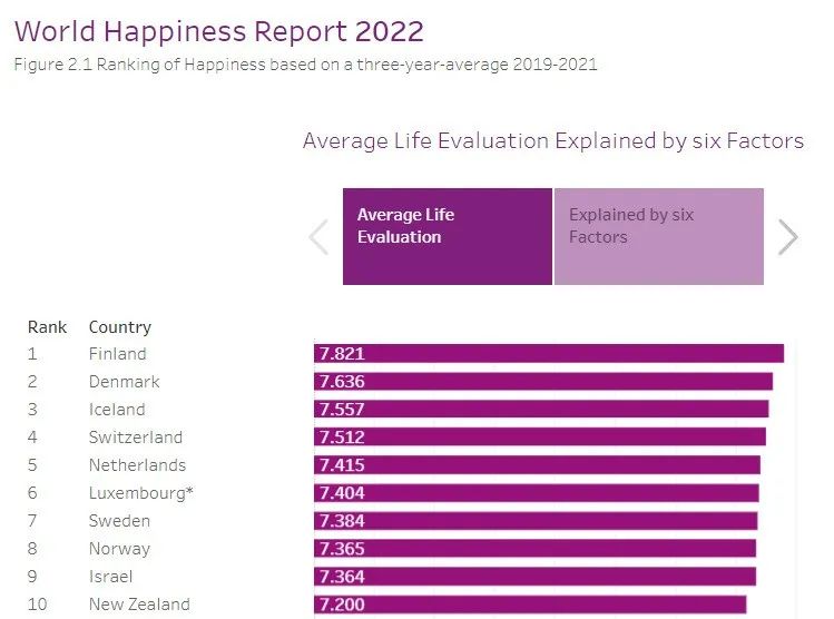 《2022世界幸福报告》芬兰排名第一 来源:https://worldhappiness.report/