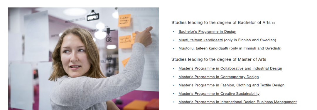 阿尔托大学设计系部分学士学位以及硕士学位英文授课课程 来源:阿尔托大学官网