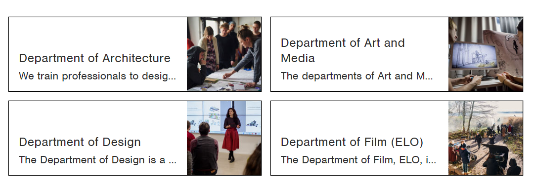 艺术设计与建筑学院下设有建筑、电影系、设计和艺术与媒体四大院系,研究领域涵盖设计、数字媒体、视听表现、艺术教育和视觉文化等多个领域。可以说包含了相当完善的艺术设计体系,共有20多个细分专业,其强势专业有:建筑设计、工业设计、产品与空间设计、游戏设计、交互设计、平面设计、视觉传达、服装设计、创新可持续发展设计等等。
