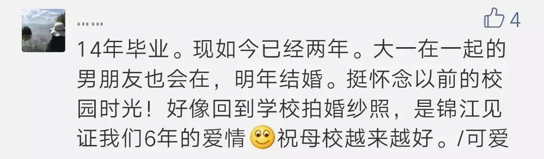 H同学说,在锦江的四年是他生命中的黄金岁月,而这段岁月因为有了W同学的出现,显得愈发温暖明媚、色彩斑斓。