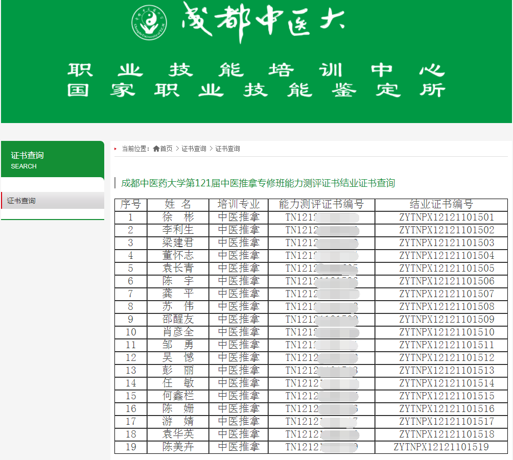 2、结业后,参加我中心组织的国家人力资源与社会保障部统一考核认证,合格者可获取《中医康复理疗》专项职业能力证书,人社官网可查,全国通用。