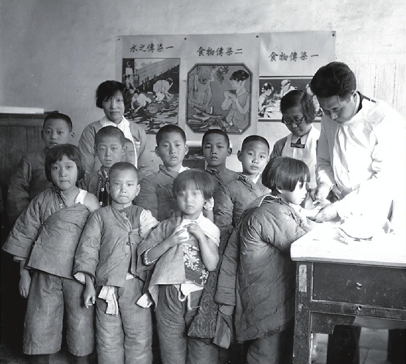 (医学生为河北定县的孩子们接种牛痘疫苗)