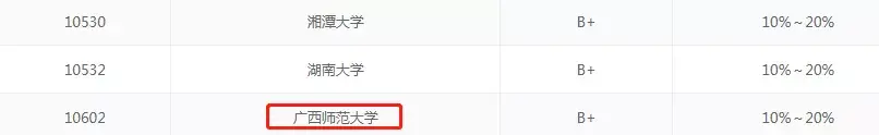 广西师范大学的中国语言文学学科评估为B,全国排名20%-30%,和其处于同一等级如湖南师范大学、华南师范大学。