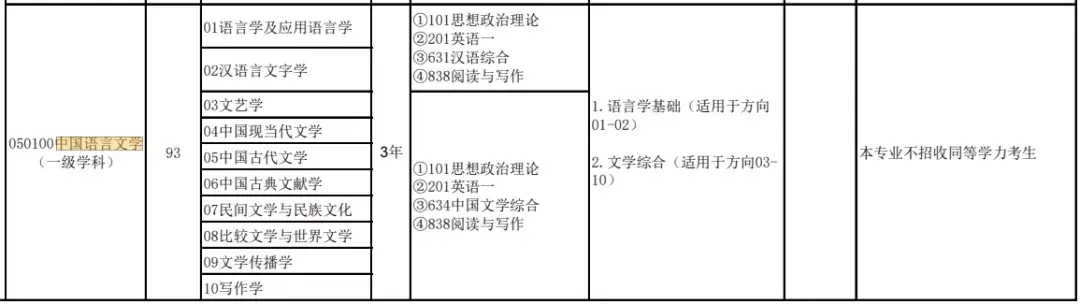 广西师范大学的中国语言文学(050100)是文学院/新闻与传播学院下所开设专业,其研究方向共10个,分别是文艺学、语言学及应用语言学、汉语言文字学、中国古典文献学、中国古代文学、中国现当代文学、民间文学与民族文化、比较文学与世界文学、文学传播学、写作学。