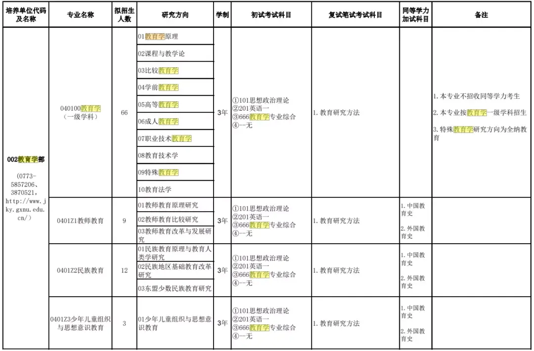 广西师范大学教育学是以二级学科进行招生的,分别是:教育学、课程与教学论、科学教育。
