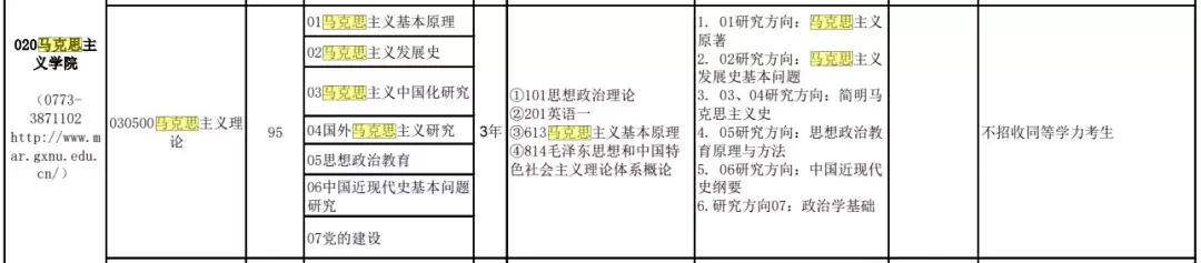 广西师范大学的马克思主义理论是马克思主义学院下开设专业,其研究方向共7个分别是:马克思主义基本原理、马克思主义发展史、马克思主义中国化研究、国外马克思主义研究、思想政治教育、中国近现代史基本问题研究、党的建设。