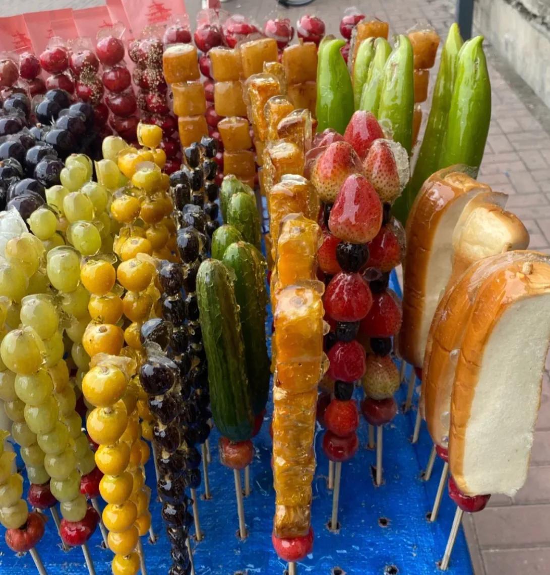 不仅可以是冰糖葫芦,还可以是冰糖面包、冰糖辣椒、冰糖黄瓜……多种食物可冰糖。