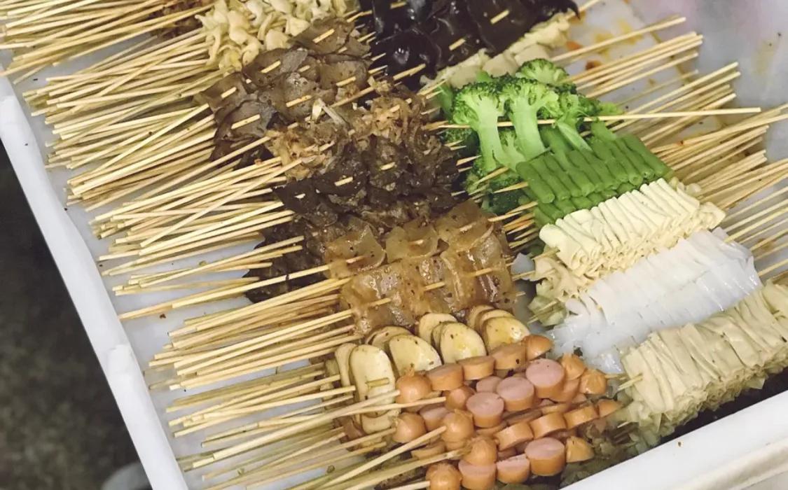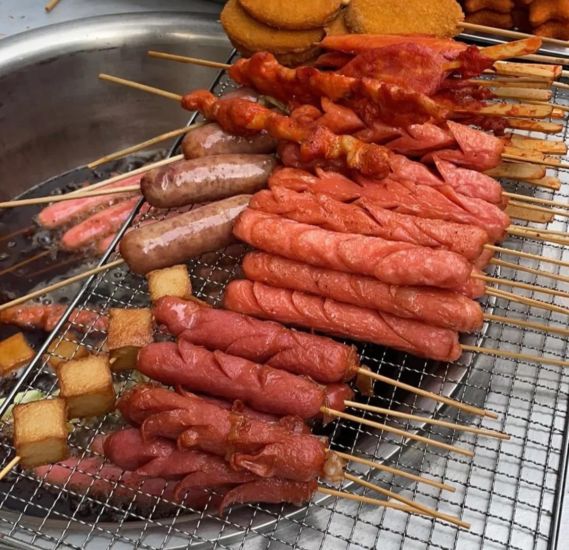油炸食品深受学生们的喜欢,油炸淀粉肠、油炸豆腐卖一块一串,油炸肉类,两块一串。