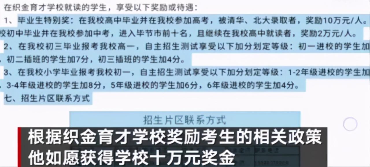 来自贵州毕节的小陈今年考上了北大,但因为迟迟没拿到当初校长承诺的10万元奖金,而求助媒体。10月24日,小陈求助媒体称 ,他原所读学校承诺其考上北大给10万元奖励未兑现!