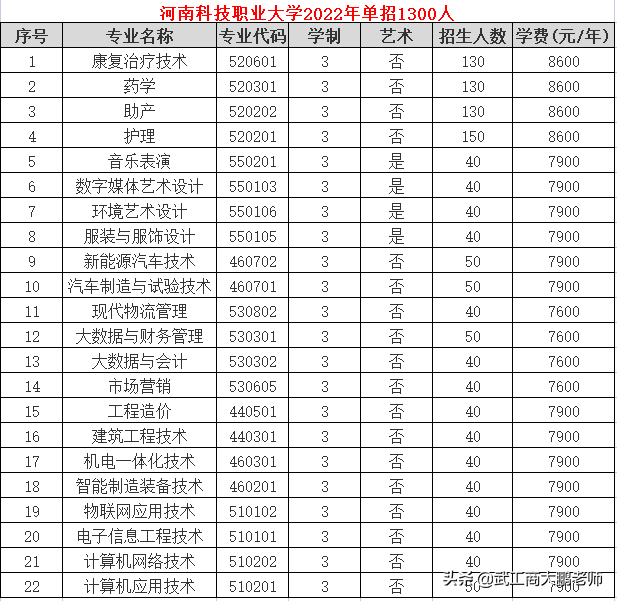 河南科技职业大学 单招计划1300人,竞争难度很容易河南科技职业大学2022年单招1300人