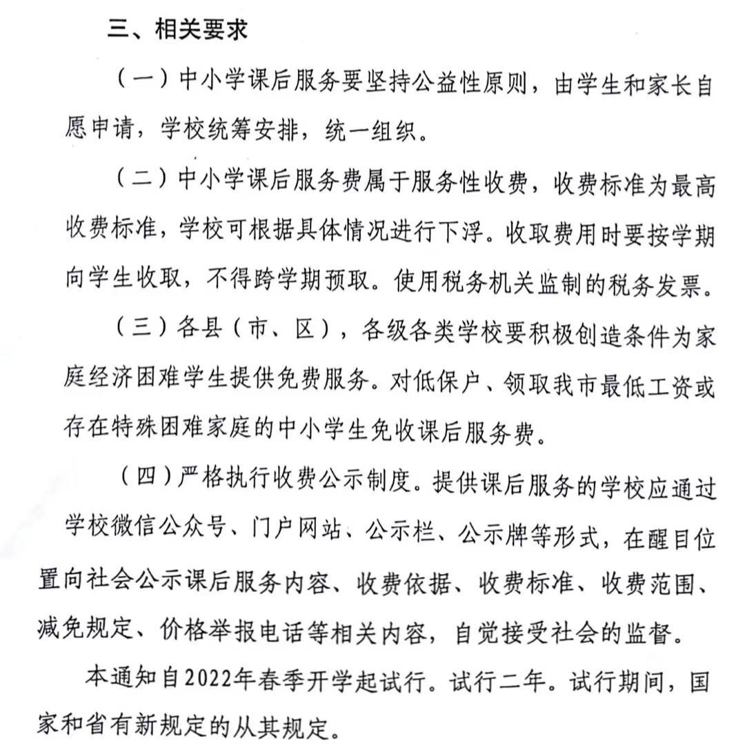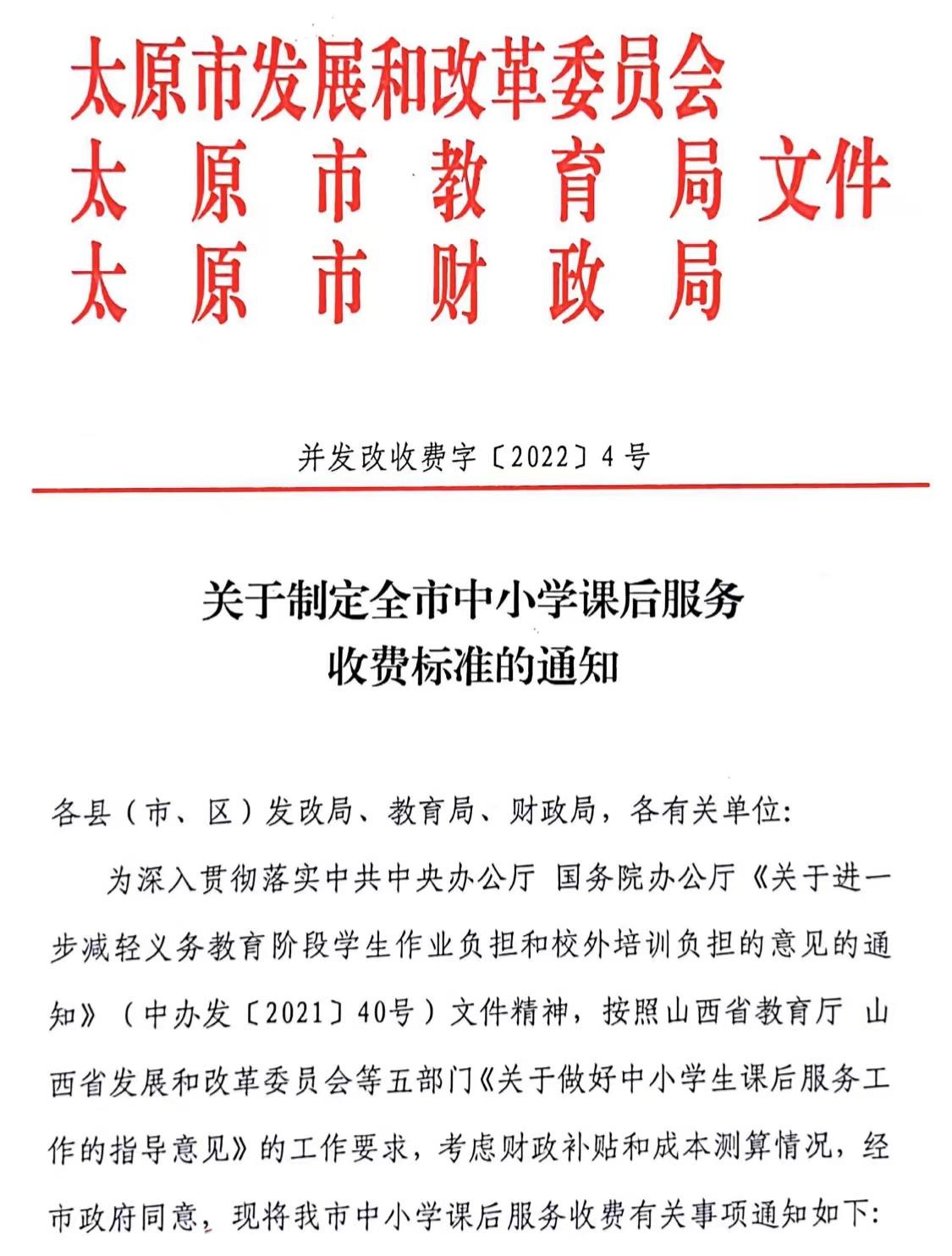 1月6日,太原市发改委、教育局、财政局联合发布《关于制定全市中小学课后服务收费标准的通知》。