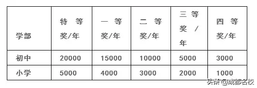 该校初中设立入学奖学金,过程奖学金、毕业升学奖学金。