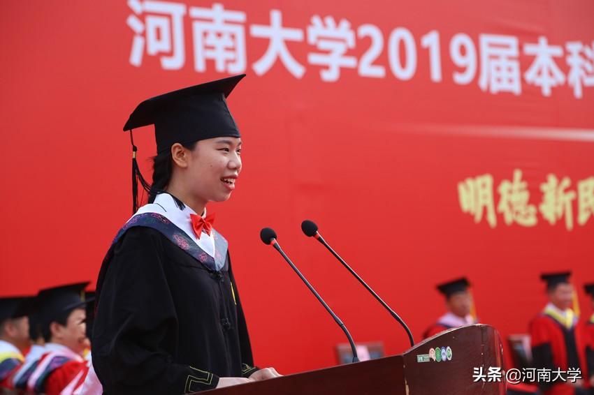 一所大学,三代情结。与河南大学有着深厚“渊源”的生命科学学院2019届毕业生黄婧祎的妈妈作为家长代表发言,表达了对学校的诚挚感谢和对毕业生的深情祝愿。她激动地说:“我的父亲、女儿、我都接受过河南大学的培养。《河南大学校歌》是流淌在我们心间最美的旋律,‘明德新民 止于至善’是我们三代人绵绵不断的共同记忆音符。”她希望毕业生们要谨记河南大学“明德新民,止于至善”的校训,为母校争光添彩,让母校引以为傲。