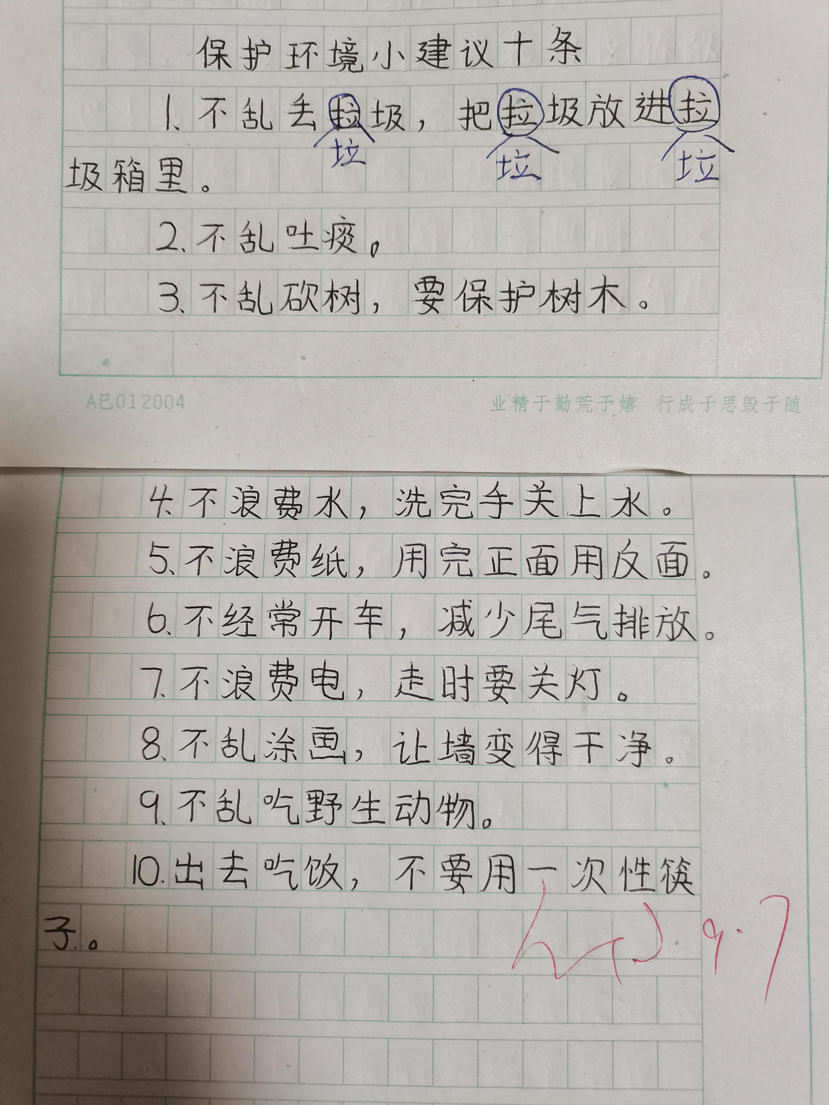 4、学生写下来的建议中主要存在问题有:错别字多,书写不认真,语句不通顺。