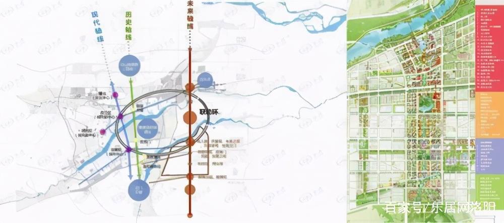 这条轴线全长约27公里,包含北邙文化段、伊洛河谷生态段、伊滨新城段和万安山森林景观段。北向南依次集中布局综合服务、交通枢纽、科技创新、体育运动等功能区,新建国际会展中心、科技馆、体育馆等公共设施。