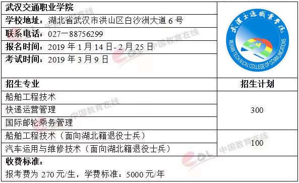 根据湖北省招办发布的文件得知:2019年湖北全省33所高职院校共105个专业开展单独考试招生,招生总数为10500人。其中,4所院校7个专业招收自主就业的湖北户籍退役士兵。
