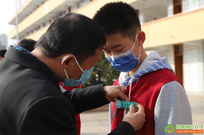 王老师发言结束后,各班学生代表走上主席台,由班主任给佩戴定制的“虎虎生威、步步高中”特殊“校徽”,其余学生在台下由班长发放校徽,自行佩戴。