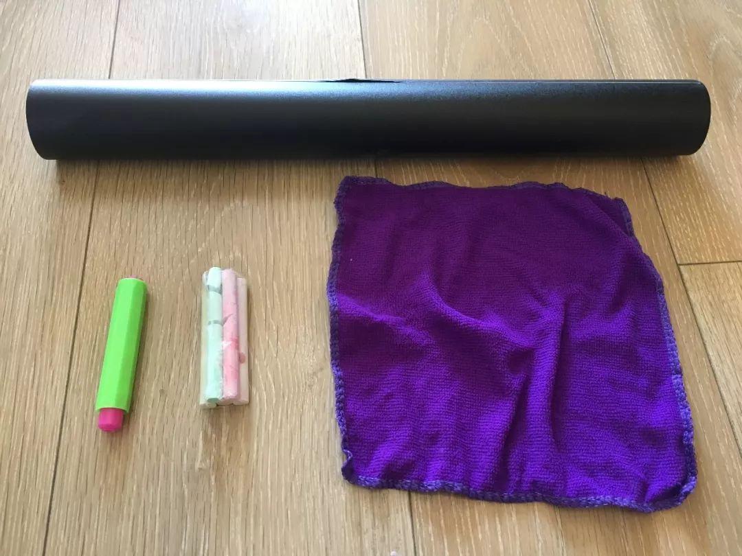 黑板贴比较简单,只需要一块布子用于擦干净需要粘贴的地方就可以了,十分的简单。