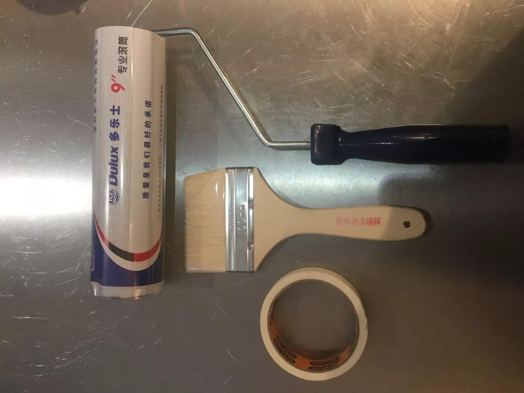 想要刷黑板漆工具简单,就是一个滚筒,一个刷子和几卷美纹纸就可以了。讲究点的可以弄个滤网,因为很多原装进口漆可能会有漆皮。