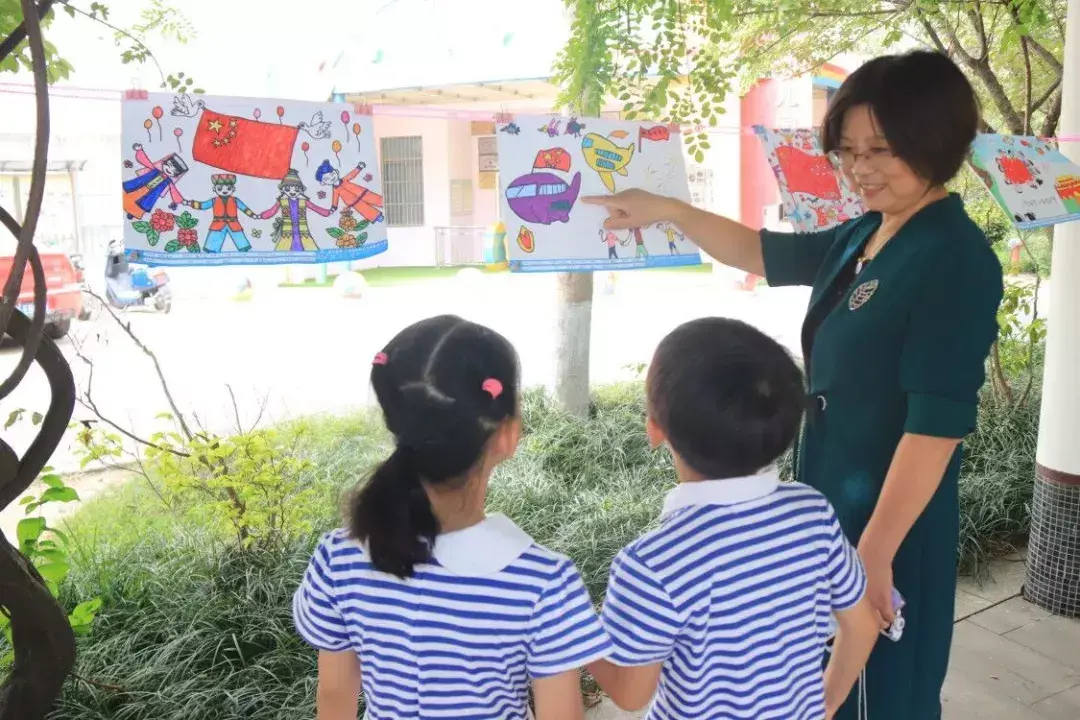 (文昌社区携手新港才艺幼儿园举办“我和我的祖国”幼儿绘画展。张晓宇 宋永根 摄)