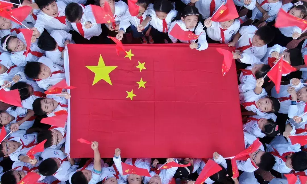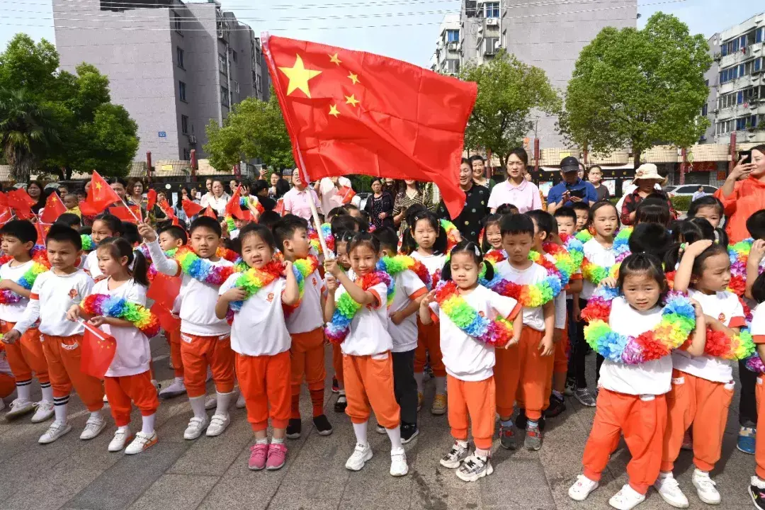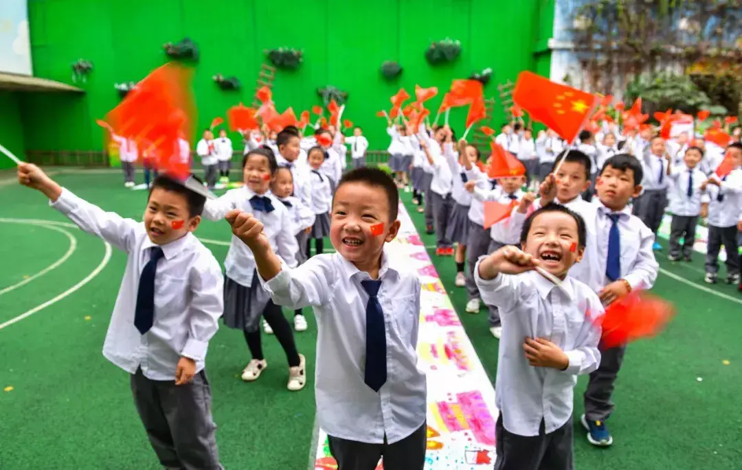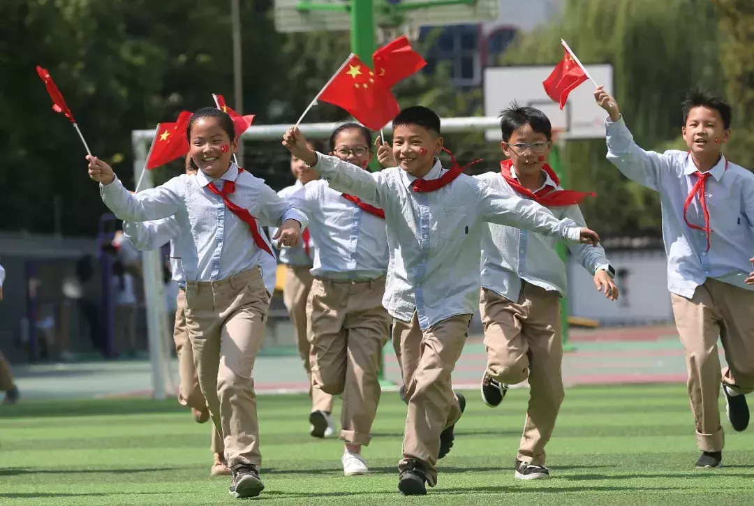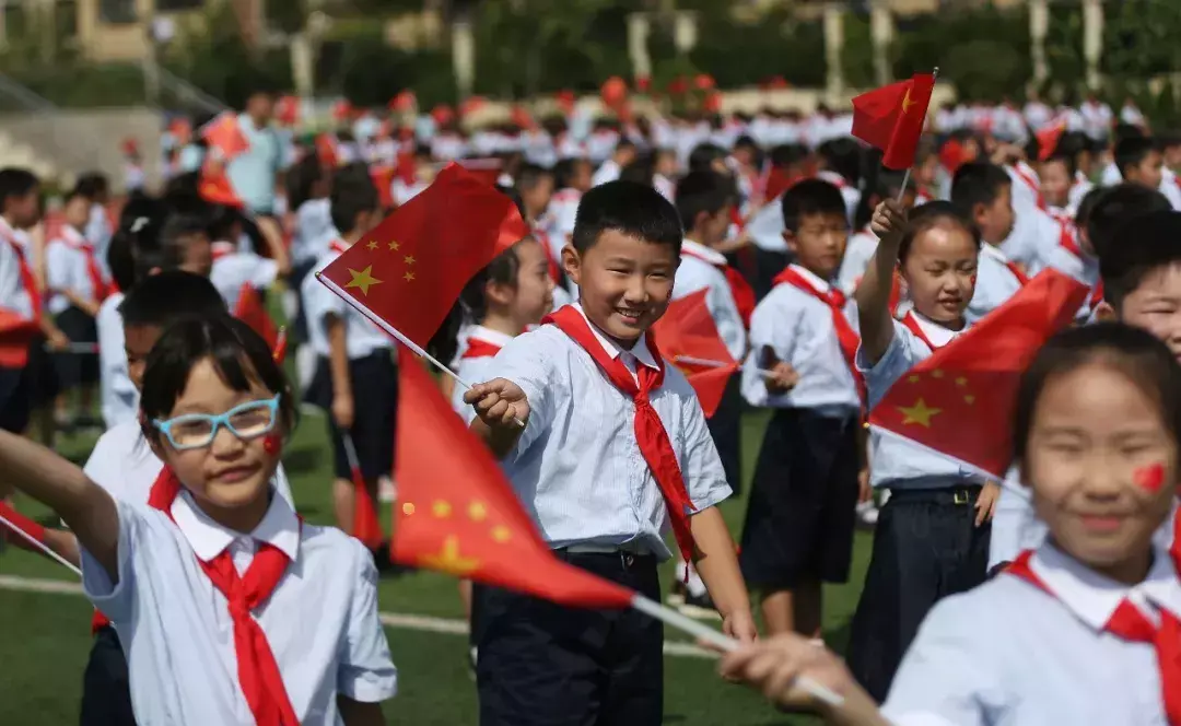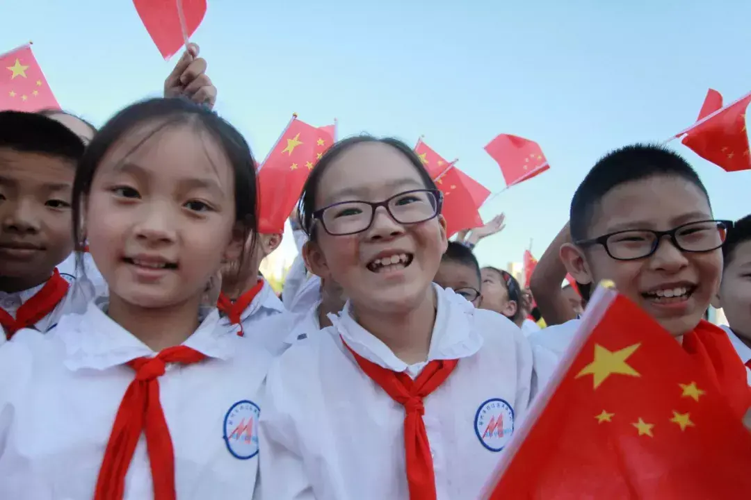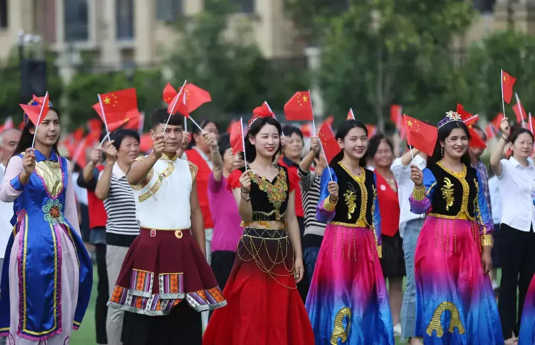 (扬州市卜桥社区联合梅岭小学西区校、扬州职业大学,举行“我爱祖国 同唱国歌”主题教育活动,小学生、少数民族大学生、红马甲志愿者、社区民警、退役军人等各个群体共700余人共同高唱国歌,并高喊“祝祖国母亲生日快乐!祖国更加繁荣昌盛!”口号,表达对祖国母亲生日的祝福。董辉 摄)