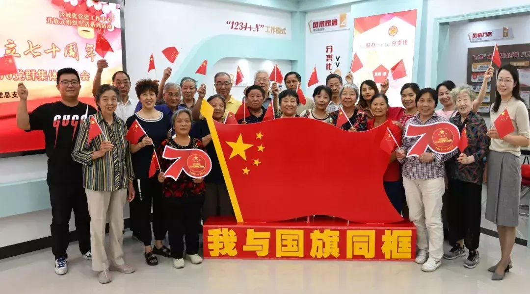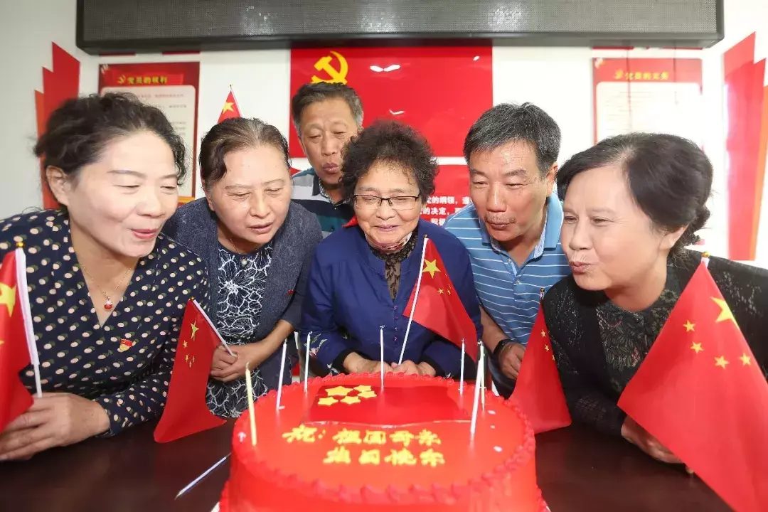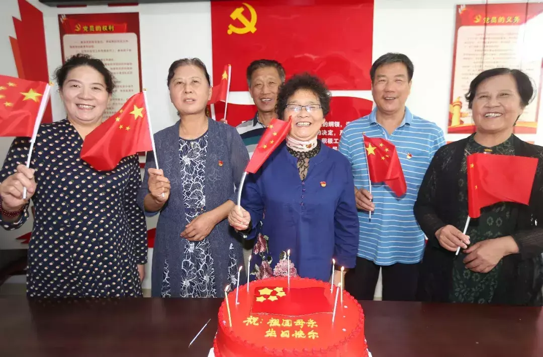 (为隆重庆祝中华人民共和国成立70周年,讴歌伟大祖国所取得的辉煌成就,虹桥社区党总支在区域化党建工作中心开展开放式组织生活系列活动“我与祖国共成长“之70党群集体生日会。宋永根 张慧 摄)