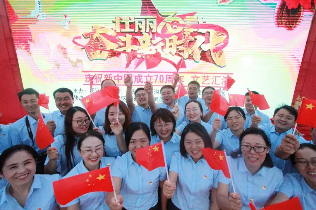(康乐艺术团成员与国旗合影。宋永根 摄)