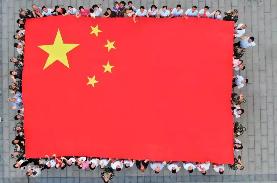 (我和国旗合个影,点赞美好新时代。刘峰生 摄)