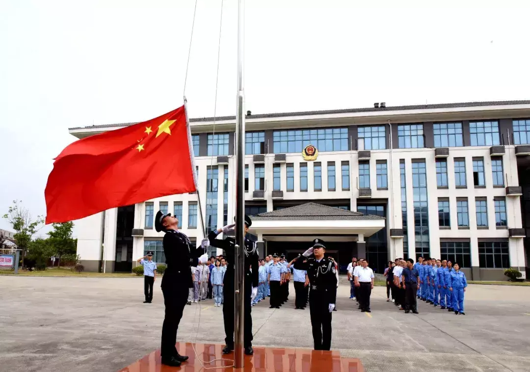 (仪征沿江党建带共建单位升国旗唱国歌迎国庆。 姜淮扬 王卓 周晓明 摄)