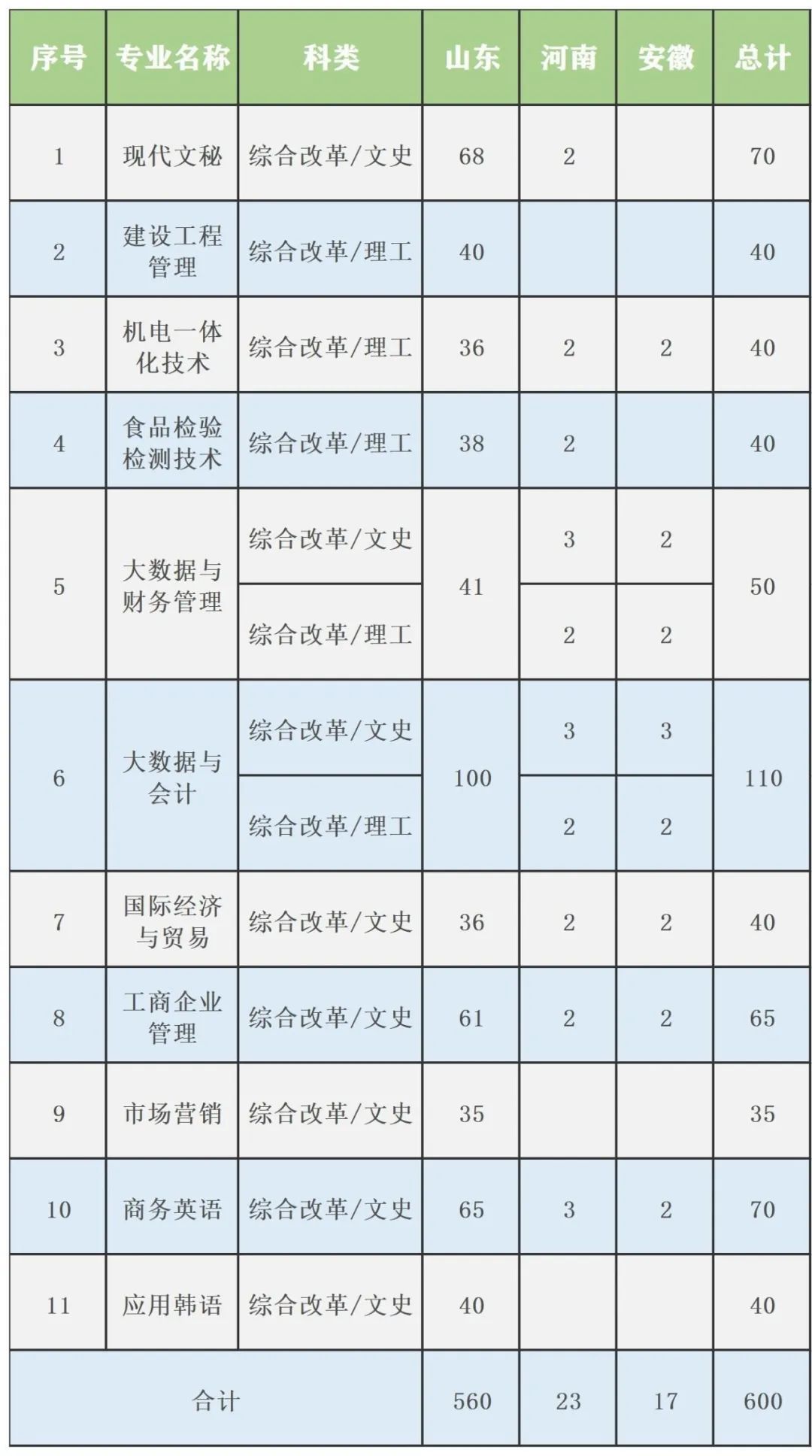 备注:考生填报志愿时以所在省(自治区、直辖市)正式公布的计划为准,综合改革地区不分文科。