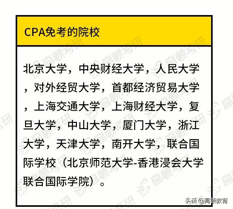 在这里,注会菌也再次提醒一下大家,并不是所有的学校都会拥有CPA免考的资格,同时在拥有CPA免考资格的学校中也并不是所有的都适合包括应届本科生!
