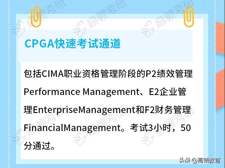 申请人只需凭借学历学位证书或学校出具的完成第一年课程学习的证明就可申请参加CPGA(CIMA,Professional Gateway Assessment)快速通道考试。