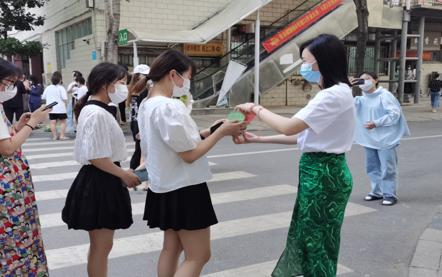 信息技术系主任喻林、党支部书记陈思为考生送关爱