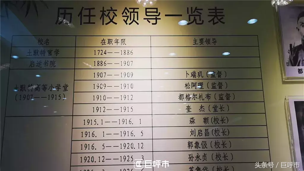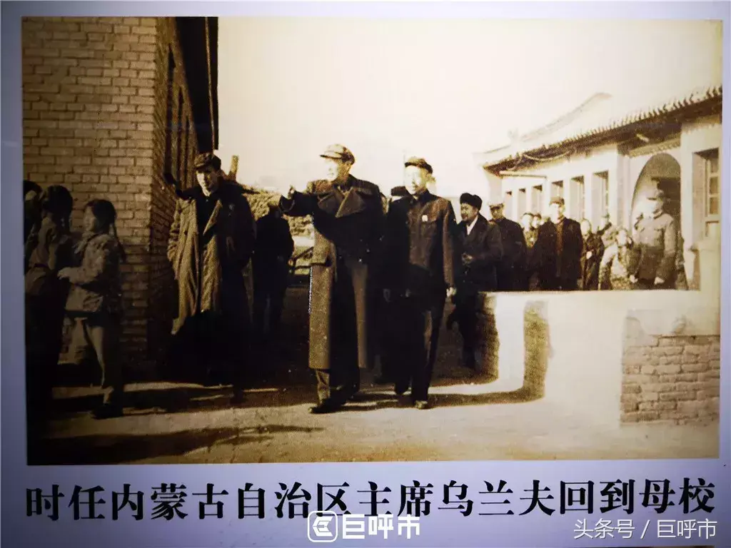 在大成殿后面的校史陈列馆里,张贴着多张乌兰夫、奎壁、吉雅泰、高布泽博等多位杰出校友在此上学期间和成为高官后重视教育的照片。