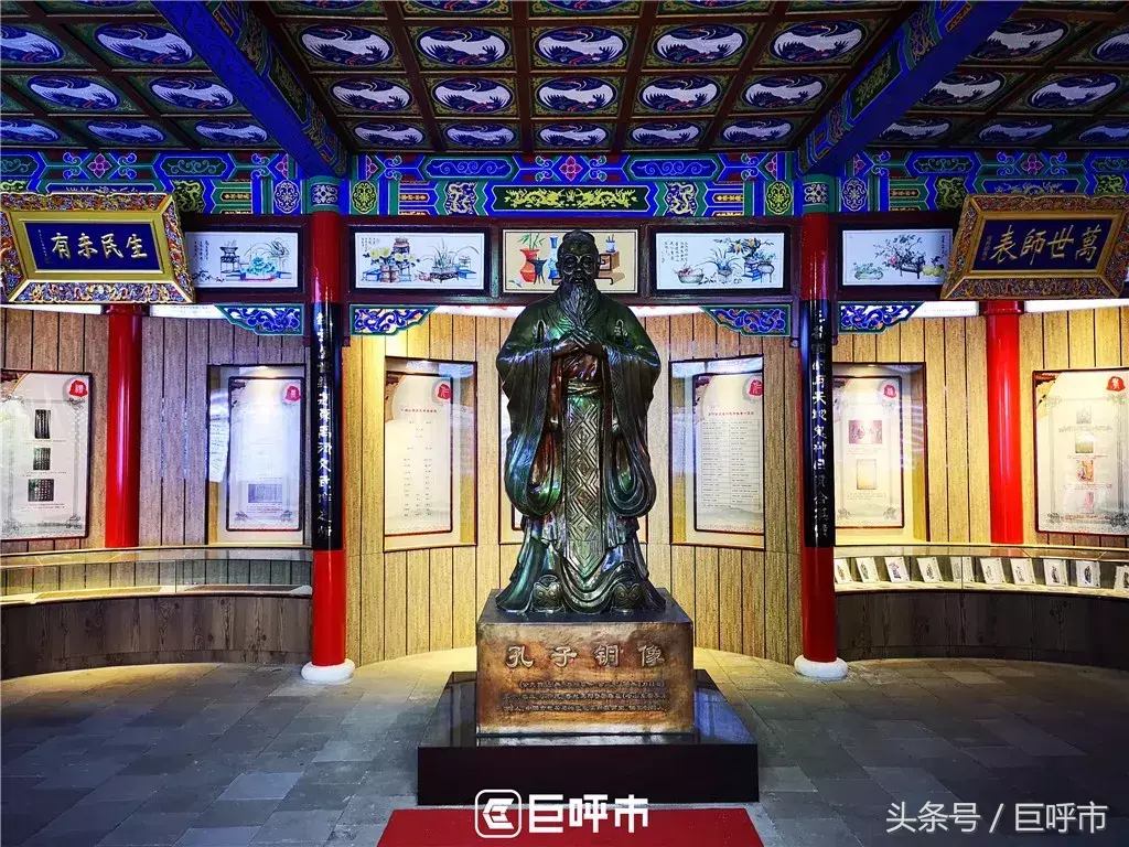 在大成殿内,竖立着一尊孔子铜像。中国历史上把文庙跟学校相随着来办教育是非常好的传统,这对师德的培养有独特的作用。