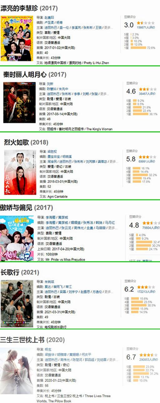 虽然2019至2021年热巴的影视作品并不多,但其露脸机会并未减少。