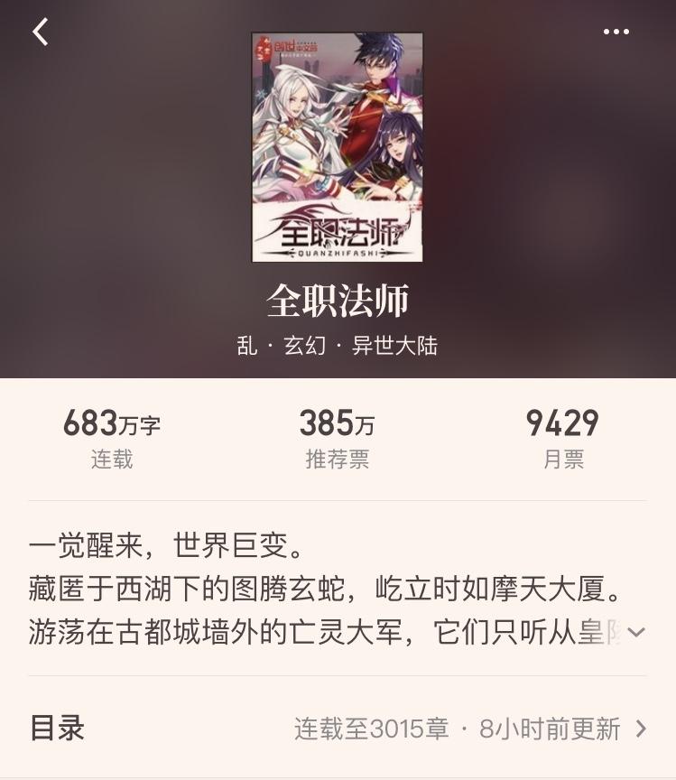 在《英雄联盟之谁与争锋》完结前,开新书《全职法师》曾说出不给新书月票就不完结的话。成为网文界威胁读者第一人。