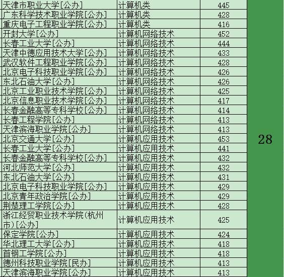 再接着是小学教育和计算机网络技术,都是12个。由此也可以看出,教育类专业还是很受大家关注和喜欢的。