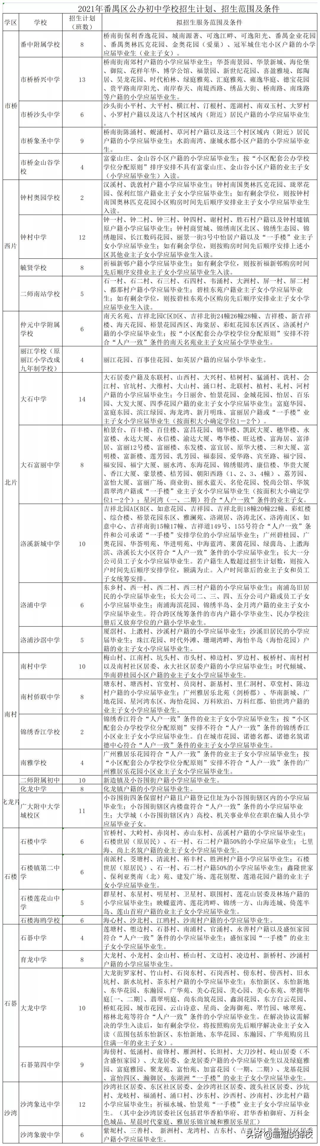 番禺区大部分公办初中是可对口直升的,对口直升表如下: