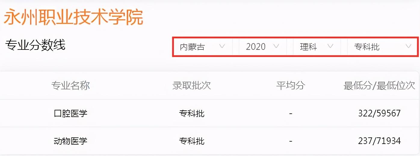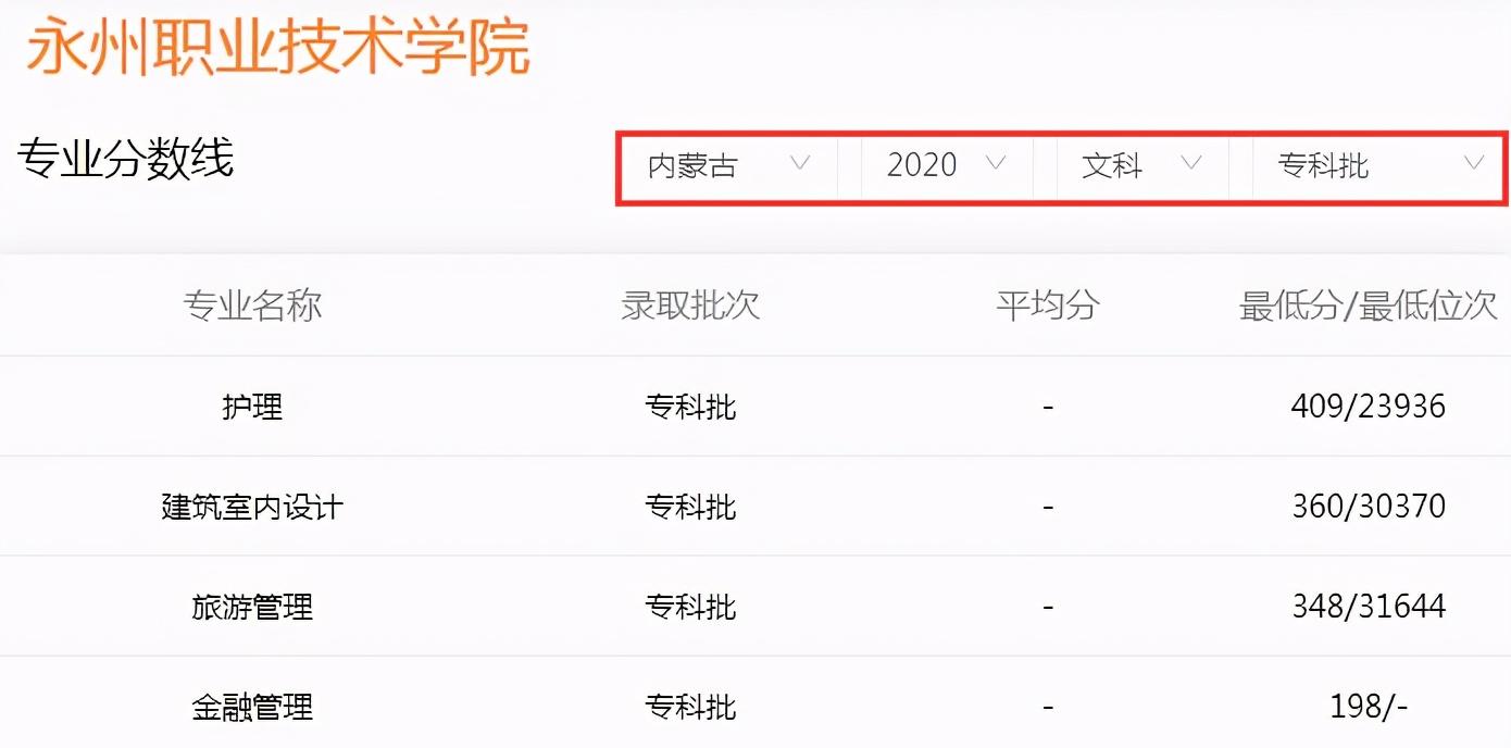 永州职业技术学院的录取分数并不是很高,但这里面的专业比较全面,去年内蒙古地区的理科考生,动物医学专业最低237分就能上,文科生旅游管理专业348分就可以。
