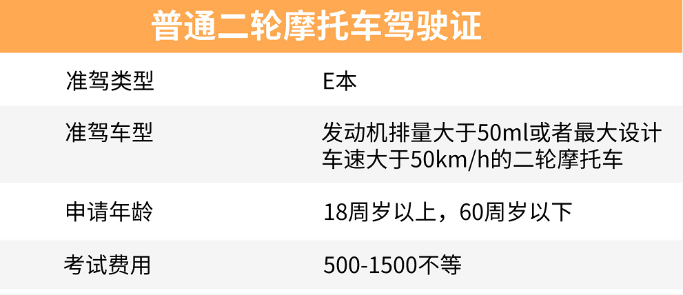 准驾车型:发动机排量大于50ml或时速大于50公里/小时的两轮摩托车(电动车)
