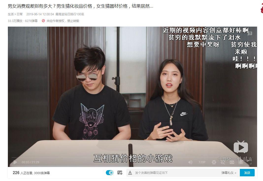 UP主“十音Shiyin”与UP主“-LKs-”在成为情侣之后,同样发布了一系列情侣向内容:“男女消费观差别有多大?男生猜化妆品价格,女生猜器材价格,结果居然...”、“【十音xLKs】车展初体验·PK盲猜车价·感受卡车/房车/豪车”等,在通过生产情侣向的新形式内容之余,也在各自的内容领域继续保持高频率的内容生产。