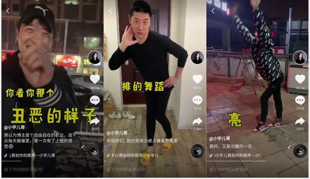 抖音中的大V“小宇儿哥”,在最初凭借美妆视频成为网红博主之后,在不断发布与男友毛路的日常沙雕互动视频的期间,俨然转变为一个网红情侣博主,视频内容也从通常的美妆视频更多地转向情侣生活视频。