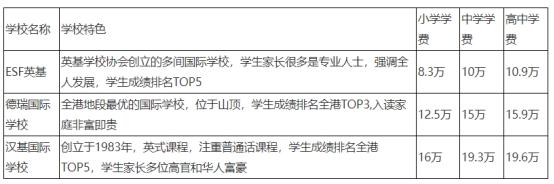 可以看出,小学阶段上海双语学校性价比不错,但是到了为升学做冲刺的高中阶段,再次反超了香港。综合来看,香港目前大约有50多家的国际学校,全年学费的中位数大约是港币82000,也就是人民币69000元。所以,总体上,绝大多数香港的国际化学校学费比起上海都要低一大块,加上香港国际学校不亚于魔都的纯英文教学环境、师资水平,都让每年众多来自内地的家长大呼“物超所值”。
