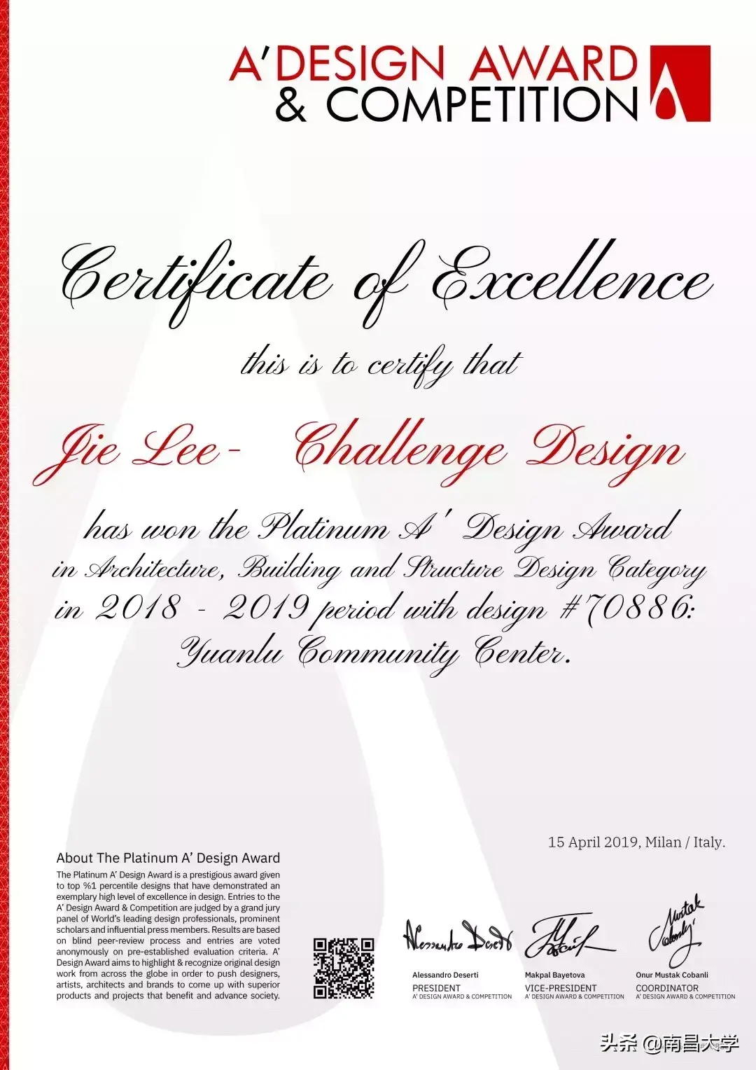近日,我校建筑工程学院91级校友——李杰,一举斩获多项国际知名大奖。奖项包括意大利2018-2019 A' Design Awards设计奖建筑类最高荣誉铂金奖(Platinum A' Design Award in Architecture)、加拿大2019 木材设计大奖(2019 BC Wood Design Awards)国际项目设计奖(International Design Award)、第12届美国“IDA国际设计奖(International Design Award)建筑类唯一的“年度最佳设计大奖”(Architect Design of the Year)及“建筑商业类金奖”(New Commercial Building-Gold)。