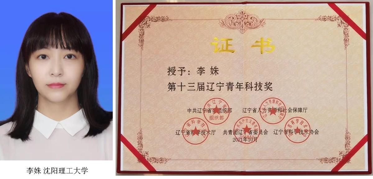 在本次评选活动中,根据《辽宁青年科技奖评选办法》(辽科协发﹝2019﹞7号)规定,经辽宁青年科技奖评审委员会组织评审、辽宁青年科技奖评选工作领导小组审定,授予李姝等46名同志第十三届辽宁青年科技奖。李姝是沈阳理工大学优秀的青年科技工作者,在科技创新领域取得了优异成绩。希望学校广大青年科技工作者以她为榜样,奋发进取,勇于创新,为科研兴校、人才强校,为辽宁老工业基地全面振兴全方位振兴贡献力量。
