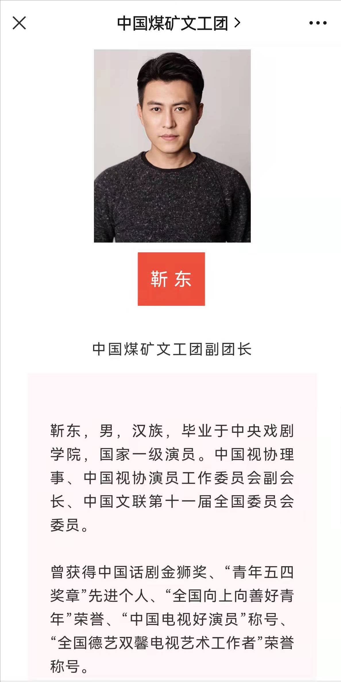 #靳东出任中国煤矿文工团副团长#、#靳东任中国煤矿文工团副团长#、#靳东出任新职#